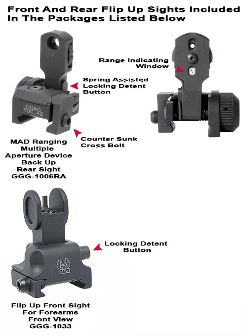 Package : GGG-1733 Includes the GG&G MAD With Ranging Aperture AR-15 Back Up Rear Iron Sight-GGG-1006RA and the GG&G Front Flip Up Sight For Forearms, GGG-1033. Normal Retail $243.50 + $18.00 Shipping = $261.50 |