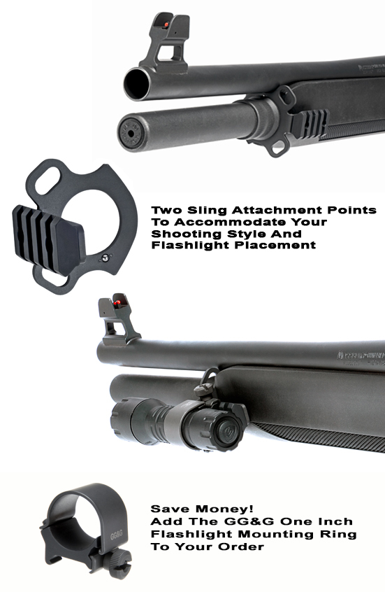 The unique design of the GG&G Mossberg 930 Sling And Flashlight Combo Mount provides an easy way to mount a tactical flashlight without interfering with the front sling attachment point. If you just need a light mount for your Mossberg 930, Click Here to check our 930 light mount.